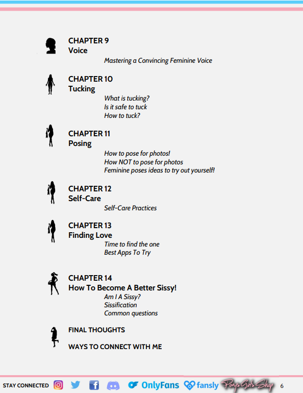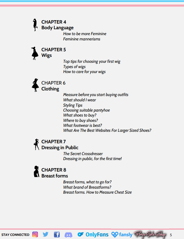 Covering aspects such as make-up, fashion, body language, mannerisms, dressing in public, tucking, self-care, and much more!